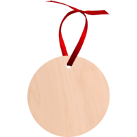 The ornament includes a red satin ribbon for hanging. For best results after sublimating, let the product sit on the open heat press to cool.